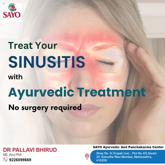 Find relief from sinusitis with Ayurvedic remedies! Experience personalized treatments targeting the root cause of congestion and inflammation. Say goodbye to discomfort and hello to natural relief. Consult with our Ayurvedic experts today and breathe easy again! For More details contact SAYO Ayurvedic Clinic And Panchakarma Center Kamothe Panvel Navi Mumbai for appointment call on 9226899669 #AyurvedicSinusCare #HolisticHealing #NaturalRemedies #RespiratoryHealth #EmpowerYourHealth #WellnessJourney #HealthyLiving