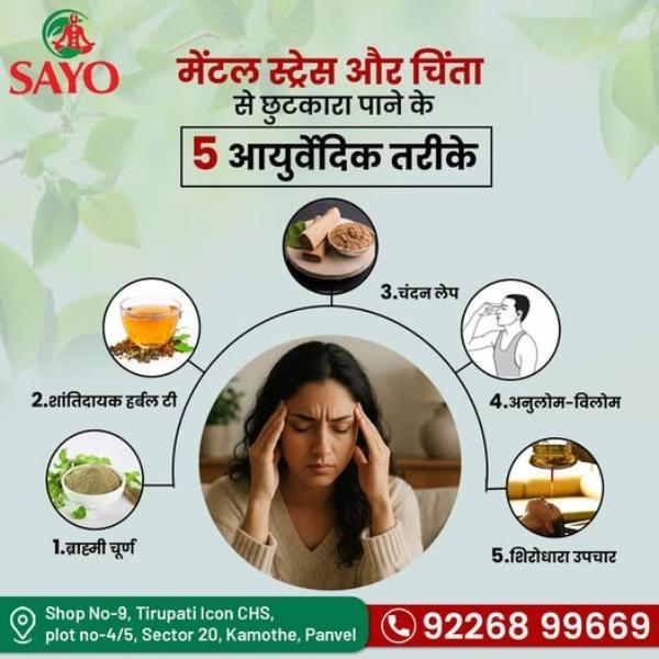 🧘♂️ मेंटल स्ट्रेस और चिंता से छुटकारा पाने के 5 आयुर्वेदिक तरीके 🌿 1️⃣ ब्राह्मी चूर्ण 2️⃣ शांतिदा...